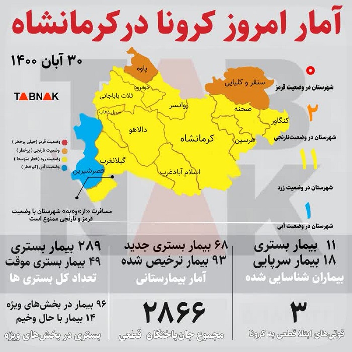 هماکنون ۲۸۹ بیمار کرونایی در بیمارستانهای استان کرمانشاه بستری و ۴۹ بیمار برای تزریق رمدسیویر بستری موقت هستند.