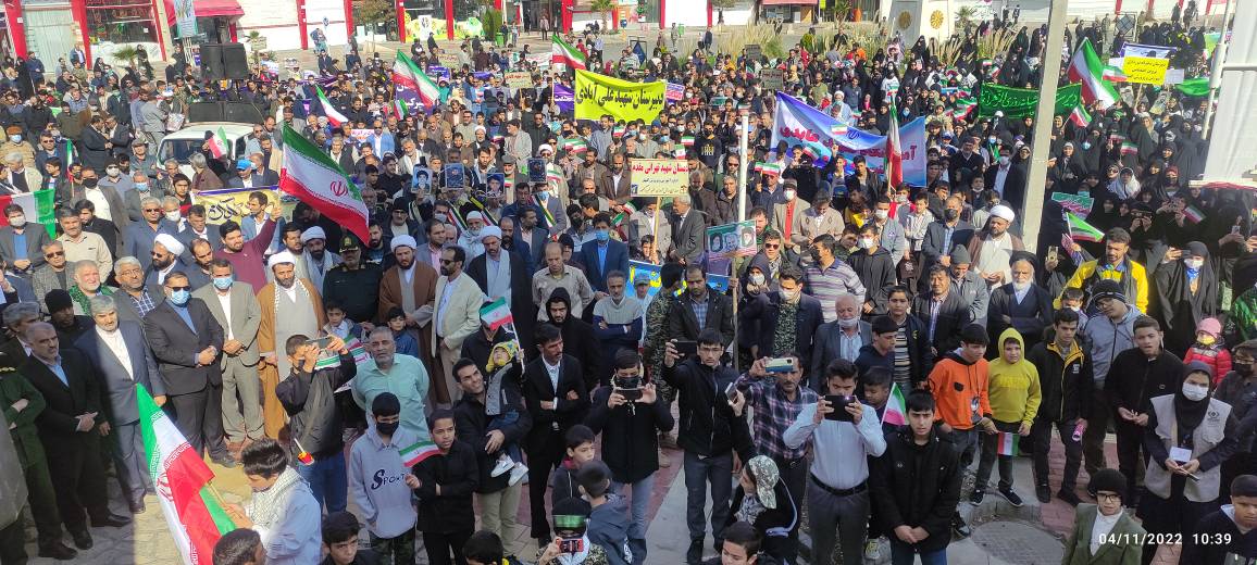به گزارش خبرنگار تابناک رضوی از گلبهار ،دانش أموزان،مردم ،مسئولان،اصناف وبازاریان شهرگلبهار دریوم الله ۱۳آبان ازمیدان ابن سینا تا میدان غدیر با شعارهای مرگ برآمریکا،مرگ براسرائیل،مرگ بر آل سعود مرگ برفتنه گر واین همه لشکرآمده به عشق رهبرآمده نفرت وانزجارخودرا از فتنه گران ودشمنان جهانی به سرکردگی آمریکای جنایتکار وحمایتهای مالی آل سعود اعلام نمودند.